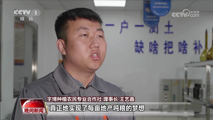 宇博種植農(nóng)民專業(yè)合作社 理事長 王藝鑫:農(nóng)民天然熱愛土地,與土地不可分離,只要是土地提高了一點(diǎn)產(chǎn)量,我都特別驕傲和自豪。作為新時代的農(nóng)村青年,我希望能回報(bào)國家,回報(bào)父老。