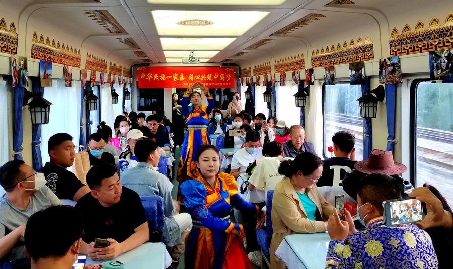 近日,包頭客運(yùn)段呼京車隊(duì)擔(dān)當(dāng)?shù)腒7911次列車上,“中華民族一家親,同心共筑中國夢(mèng)”聯(lián)歡會(huì)上,列車員精彩的演出博得了旅客的陣陣掌聲,蒙古族旅客琪琪格說“在列車上欣賞到精彩的舞蹈、動(dòng)人的歌聲,還有濃郁的奶茶,太讓我意外了,也太讓我感動(dòng)了?!?/p>