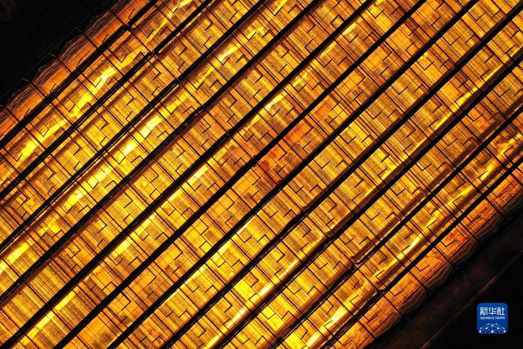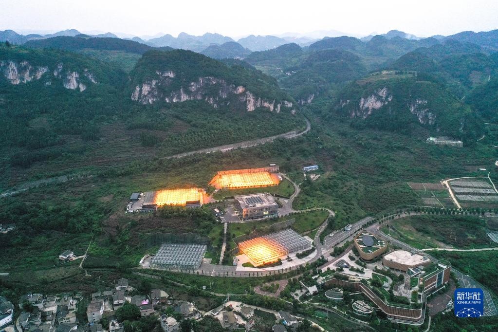 這是5月23日拍攝的貴陽(yáng)市開陽(yáng)縣南江蔬菜良種繁育中心育苗大棚夜間補(bǔ)光場(chǎng)景(無(wú)人機(jī)照片)。補(bǔ)光更有利于種苗生長(zhǎng),縮短育苗周期。