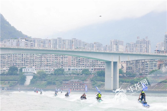 △來自全國(guó)各地的參賽選手騎著摩托艇入場(chǎng)。華龍網(wǎng)-新重慶客戶端 黃歡 攝