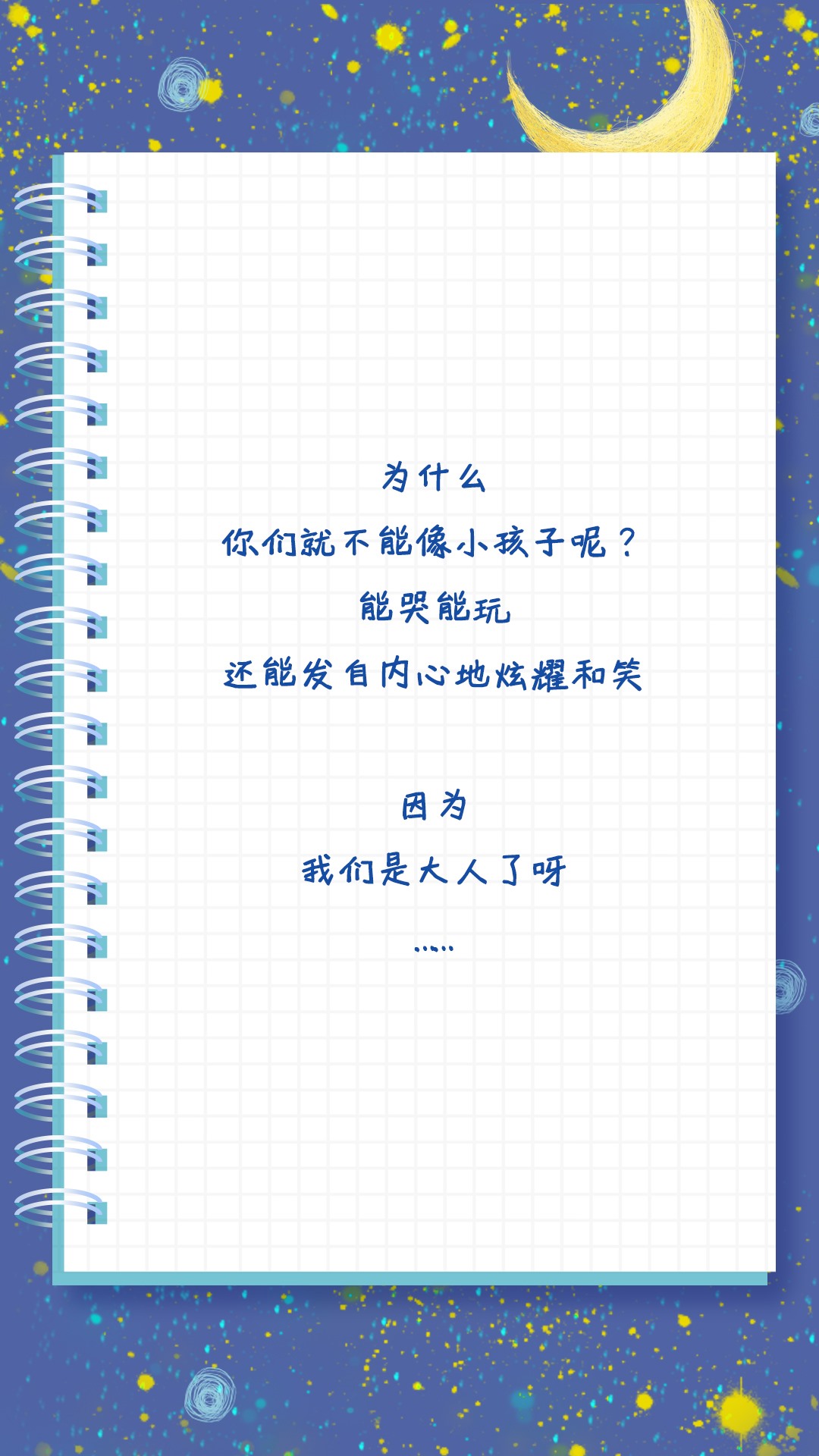 也許是不做小孩的時間太長了吧,長到讓我們忘了做小孩是什么感覺。現(xiàn)實世界推著你長大,有多少次仰望星空,想回到童年,體會簡單的快樂。拒絕做無聊大人,釋放內(nèi)心的“小孩”,親愛的大人,請好好做自己吧!祝每一位“大朋友”節(jié)日快樂!