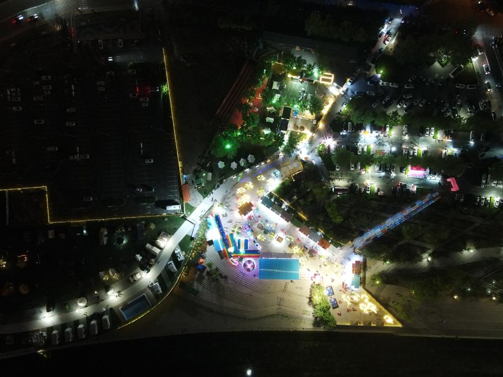 天津市中天煋河村房車露營(yíng)公園夜景(無(wú)人機(jī)照片,4月30日攝)。新華社發(fā)