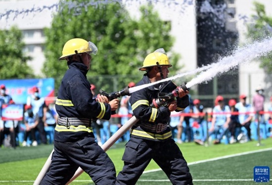 6月2日,微型消防站代表參加水槍打靶消防業(yè)務(wù)技能比武。