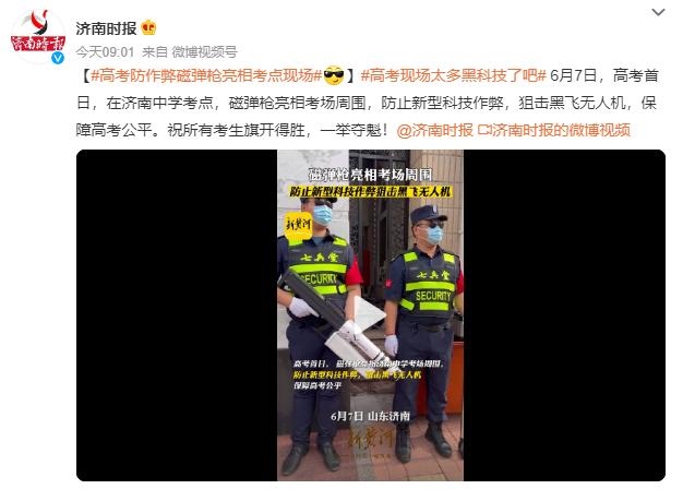 ·高考防作弊磁彈槍亮相山東濟(jì)南考點(diǎn)現(xiàn)場:防止新型科技作弊,狙擊黑飛無人機(jī)。