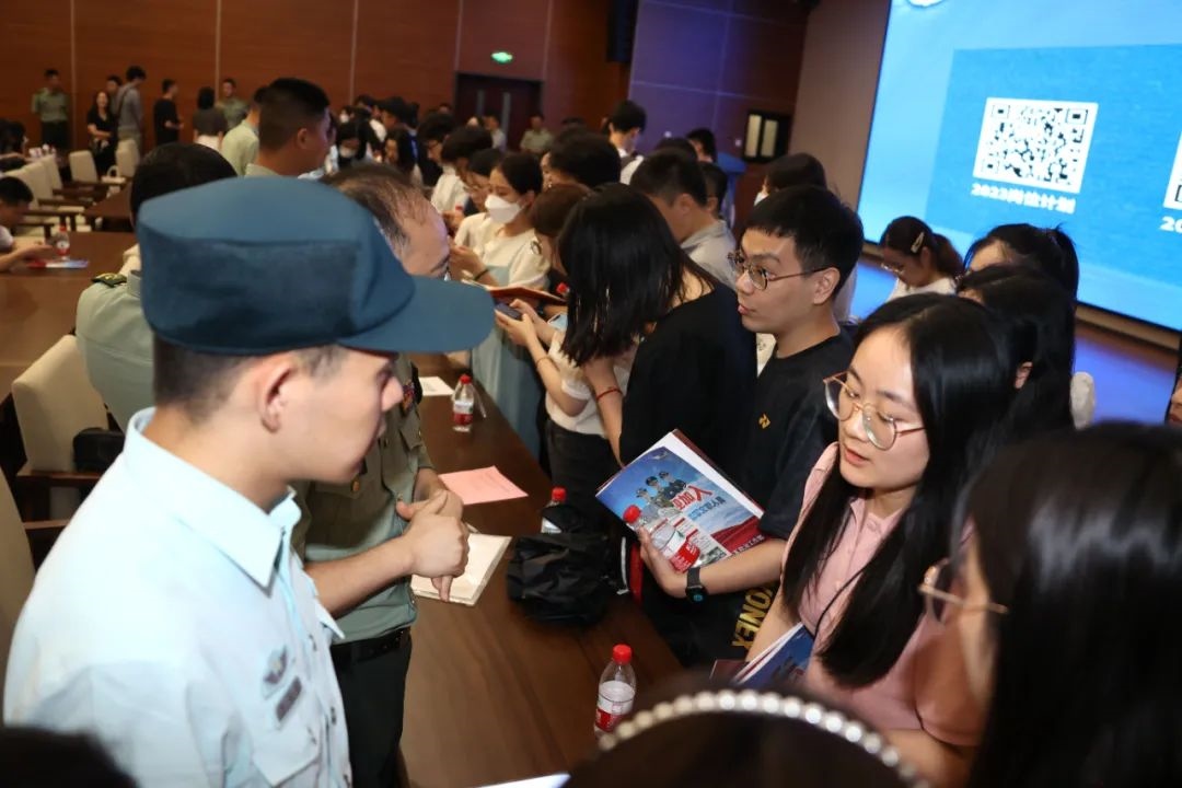 從“政治榮譽高、與國家命運聯(lián)系緊”,到“福利待遇優(yōu)、地域環(huán)境好”,各院校人力資源干事坦率真誠的介紹得到了現(xiàn)場學(xué)生們的肯定。“這次來到學(xué)校,就是想告訴大家,當(dāng)前文職人員隊伍還有部分缺額,是青年學(xué)子干事創(chuàng)業(yè)的好機(jī)遇,發(fā)展前景十分廣闊……”陸軍政治工作部文職人員局領(lǐng)導(dǎo)的一番話,點燃了高校學(xué)子投身國防的熱情。