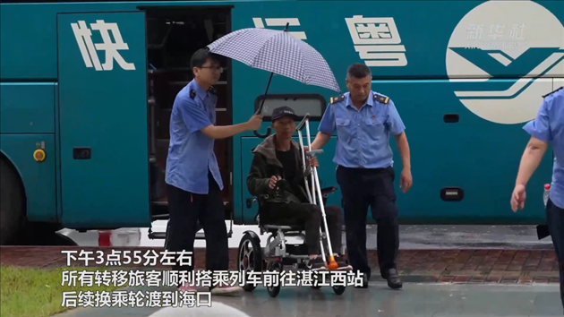 下午3點55分左右,所有轉(zhuǎn)移旅客順利搭乘列車離開前往湛江西站,后續(xù)換乘輪渡到??凇?/p>
