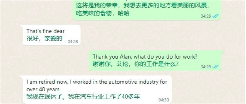 “通過對方發(fā)來的照片可以觀察他居住的環(huán)境、開的車等等,判斷他有沒有錢,沒有錢就直接丟掉不聊了。詐騙團(tuán)伙里的組長、團(tuán)長或者是其他騙到很多錢的人,也會(huì)分享自己聊天經(jīng)驗(yàn),告訴我們有哪些地方需要改進(jìn)。”