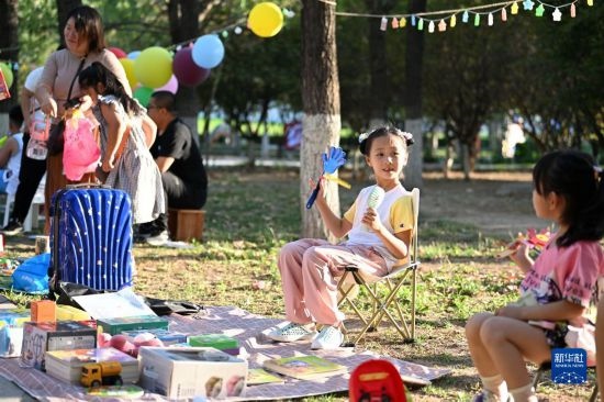 當(dāng)日,天津市少年兒童活動(dòng)中心舉辦娃娃集市、帳篷音樂會(huì)等活動(dòng),豐富孩子們的暑期生活。