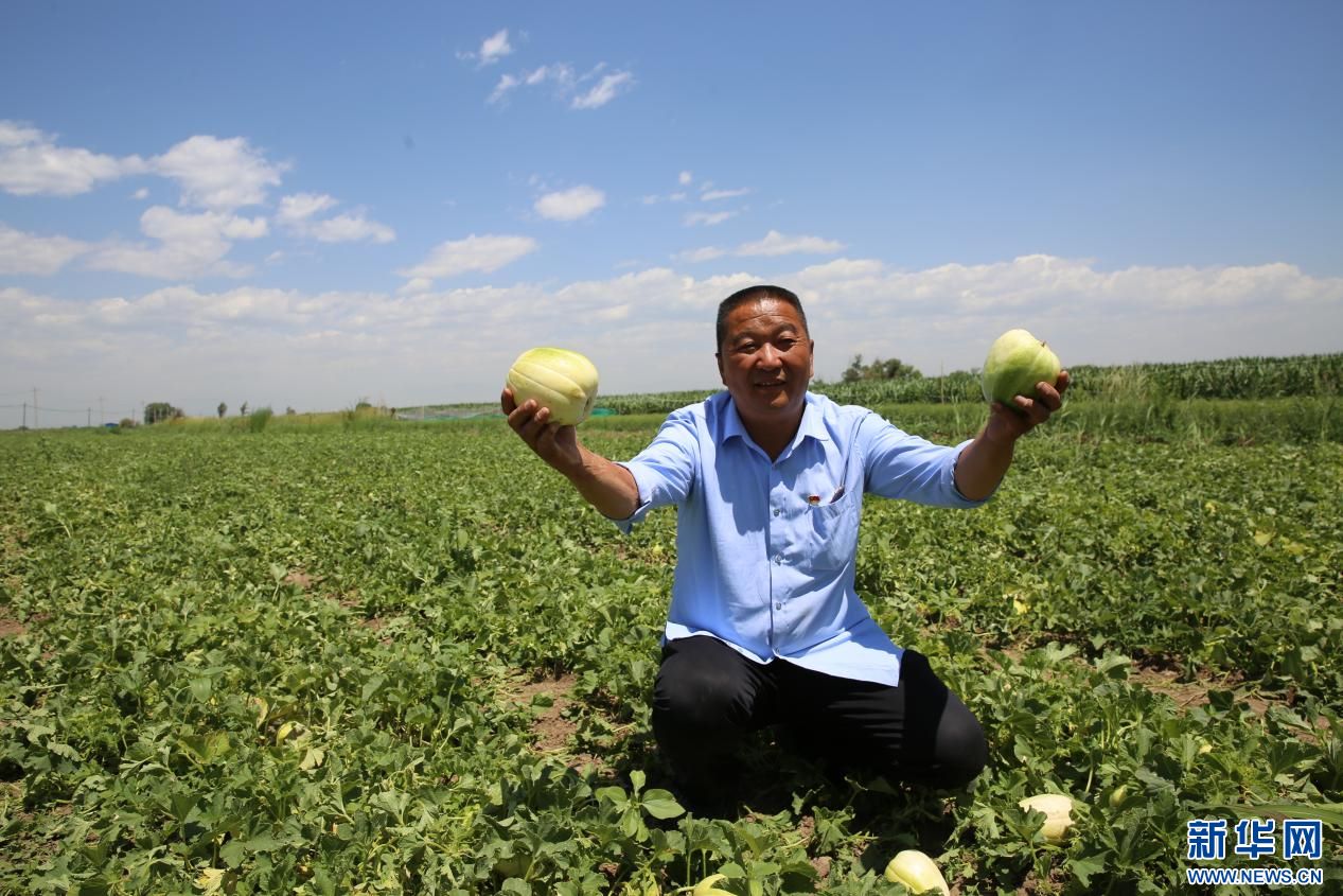 7月6日,土默特左旗口肯板村支書(shū)展示香瓜。新華網(wǎng) 楊騰格爾 攝