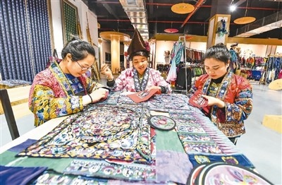 在苗族聚居的貴州,近年來將這一文化瑰寶作為產(chǎn)業(yè)大力推動(dòng)發(fā)展,婦女們背著娃、繡著花、養(yǎng)活自己養(yǎng)活家,不僅用一針一線“繡”出美好生活,還將蘊(yùn)藏著古老文化的苗繡巧妙融入時(shí)尚元素,形成產(chǎn)業(yè)融合互動(dòng)。如今,古老的苗繡日益走進(jìn)大眾生活,煥發(fā)蓬勃生機(jī)。