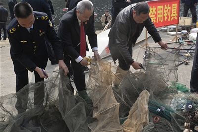 今年3月,武岡法院聯(lián)合邵陽(yáng)市中級(jí)人民法院、武岡市農(nóng)業(yè)農(nóng)村局等部門,在迎春亭街道辦事處“攔馬江碼頭”聯(lián)合舉行集中銷毀禁用漁具暨增殖放流活動(dòng)。活動(dòng)現(xiàn)場(chǎng)銷毀電瓶、地籠、錨魚等違法捕撈工具690套,放生6720尾15厘米以上的青魚、草魚。購(gòu)買這些魚苗的資金則全部來(lái)源于非法捕撈水產(chǎn)品案被告繳納的漁業(yè)資源損失補(bǔ)償金。