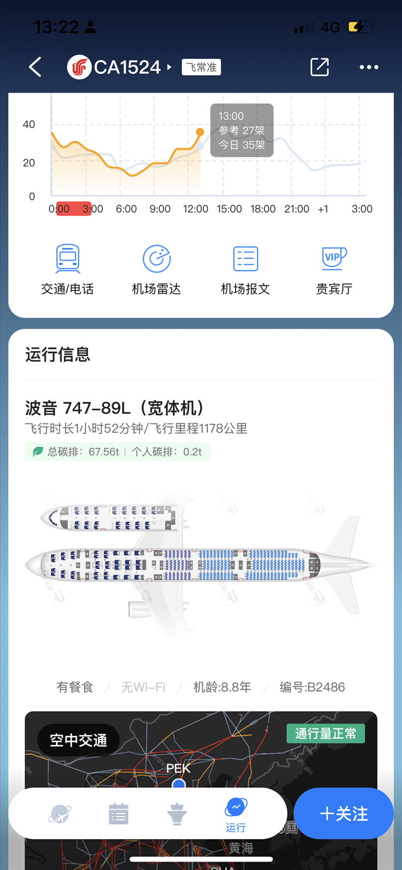 遭遇晴空顛簸后國航CA1524航班今天正常執(zhí)飛,機(jī)型換為波音747