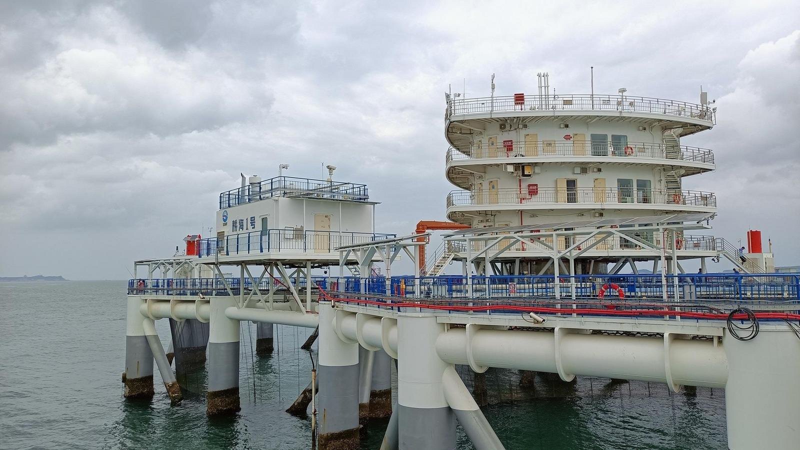 在山東省煙臺市萊山區(qū)漁人碼頭以東四十里灣海域,“耕海1號”像是一條正在遨游的魚,魚頭是包括海洋科普館、水樂園等在內(nèi)的主體平臺,魚尾由3個直徑40米的圓形子網(wǎng)箱組成,網(wǎng)箱里養(yǎng)殖著斑石鯛、紅鰭東方鲀等優(yōu)質(zhì)海水魚。7月29日,在“高質(zhì)量發(fā)展調(diào)研行”山東主題采訪活動中,山東海洋集團耕海科技總經(jīng)理尉巖說,“耕海1號”依托5G技術(shù)等,以科技創(chuàng)新提升漁業(yè)養(yǎng)殖效率,并將智慧漁業(yè)、科技研發(fā)、科普教育等功能有機結(jié)合起來,探索海洋牧場多元融合發(fā)展新模式。
