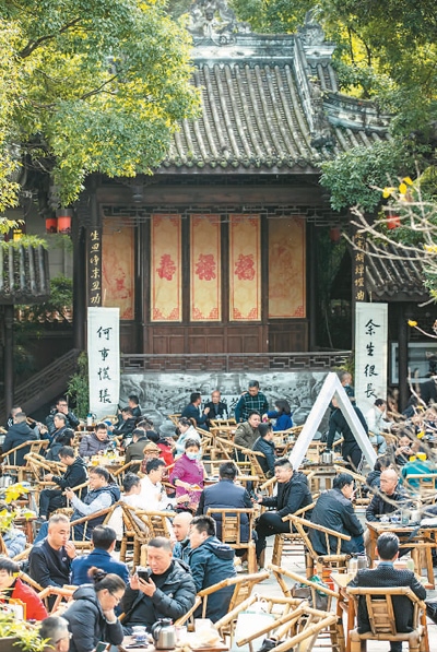 7月的最后一個(gè)周末,金瑾約上同事來(lái)了一場(chǎng)“說(shuō)走就走”的旅行,從北京飛抵成都,位于成都人民公園里的鶴鳴茶社是她們的第一站。“很多成都旅游攻略都提及鶴鳴茶社,我一直很想去那里體驗(yàn)成都的‘慢生活’。”金瑾說(shuō),坐在竹椅子上,面前擺著白瓷蓋碗茶,身邊有人“擺龍門(mén)陣”,不時(shí)有掏耳朵的手藝人在身旁茶座間穿行?!霸谶@里待上一整天,‘巴適得板’!”