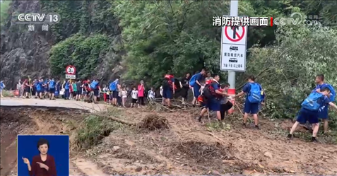 8月2日上午,現(xiàn)場總指揮決定護(hù)送自愿離開的被困群眾進(jìn)行撤離。在撤離的隊(duì)伍中,有38名來自新疆參加北京游學(xué)的孩子,他們最小的6歲,平均年齡也只有8歲。為了保障轉(zhuǎn)移時的安全,撤離線路選擇了相對安全的盤山公路進(jìn)行。途中經(jīng)過落石塌方險(xiǎn)區(qū)的時候,消防員們依次排開,在斷崖旁形成人墻,用身體筑起一條防線。遇到水流,消防員們把孩子們抱著傳遞到安全位置再繼續(xù)前行。