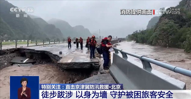 央視網(wǎng)消息:受持續(xù)強(qiáng)降雨影響,北京市房山區(qū)十渡鎮(zhèn)出現(xiàn)斷路、斷電、斷水、通信中斷等情況。經(jīng)過多部門聯(lián)合作業(yè),目前,通向十渡鎮(zhèn)核心區(qū)的六渡橋已恢復(fù)通行。