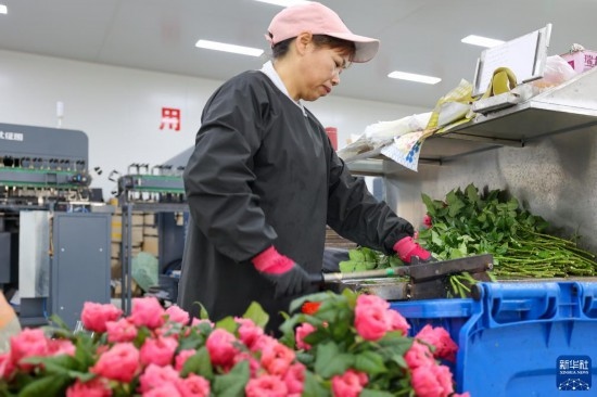 每天,由花農(nóng)采摘的鮮花進入分揀包裝車間,預(yù)冷、分級、包裝、入庫冷藏等工作井然有序地開展。經(jīng)過采后處理的鮮花一部分通過園區(qū)自有物流直接向客戶發(fā)貨,一部分則由專門的鮮花運輸車運往昆明國際花卉拍賣交易中心,開啟拍賣流程。
