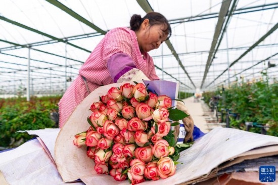 清晨,在云南省昆明市晉寧區(qū)云天化晉寧花卉產(chǎn)業(yè)現(xiàn)代化示范園內(nèi),品類各異的鮮花競相綻放,花農(nóng)們在現(xiàn)代化大棚里忙著采摘、搬運。云天化晉寧花卉產(chǎn)業(yè)現(xiàn)代化示范園是集育苗、智能溫室大棚、水肥一體化、無土綠色栽培、全程數(shù)字化管理系統(tǒng),以及鮮切花采后處理、預(yù)冷儲藏等為一體的高標準設(shè)施農(nóng)業(yè)產(chǎn)業(yè)園區(qū),年產(chǎn)鮮切花1.6億枝。