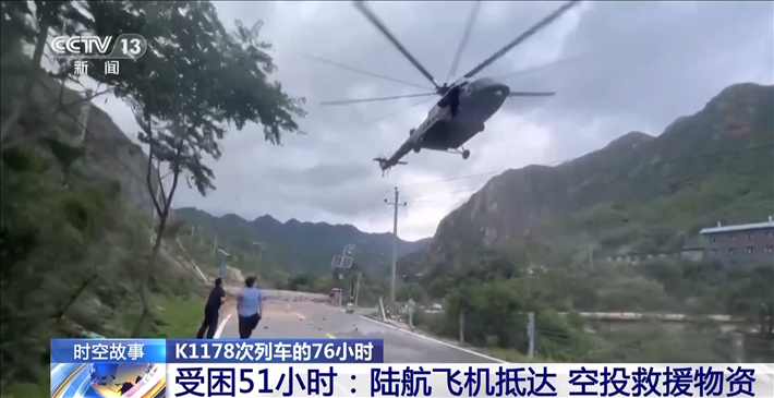8月1日下午4:00,K1178次列車(chē)被困51小時(shí)后,某陸航旅4架滿載應(yīng)急物資的飛機(jī),克服不利氣象因素,在北京門(mén)頭溝地區(qū)執(zhí)行空投任務(wù),并為K1178次列車(chē)空投救援物資。然而,由于沿河城站位于山谷中,地形狹長(zhǎng),周邊環(huán)境復(fù)雜,再加上氣象條件不好,空投一開(kāi)始并不順利。