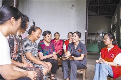 圖③:法官與青年志愿者走進(jìn)林區(qū)村民家中普及法律知識(shí)。