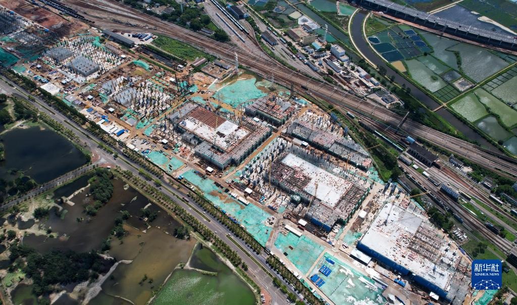 海口新海港和南港“二線口岸”(貨運(yùn))集中查驗(yàn)場(chǎng)所建設(shè)項(xiàng)目(7月21日攝,無人機(jī)照片)。