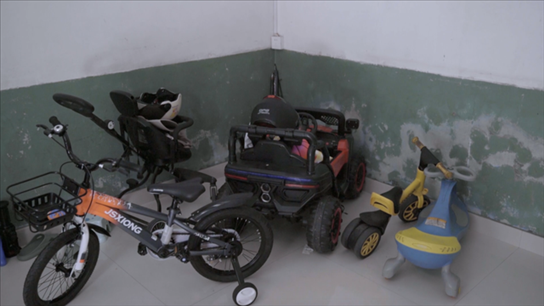 房間的一角放著孫兒的小車。