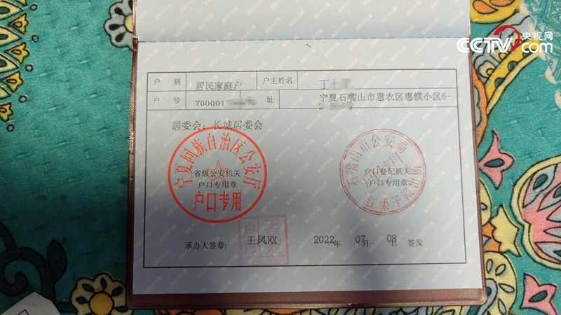 丁君現(xiàn)在石嘴山的城市戶口(中國之聲記者任夢巖 攝)