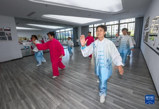 8月24日,在湖州市龍泉街道市陌河社區(qū),老人們在參加迎亞運(yùn)健身活動(dòng)。