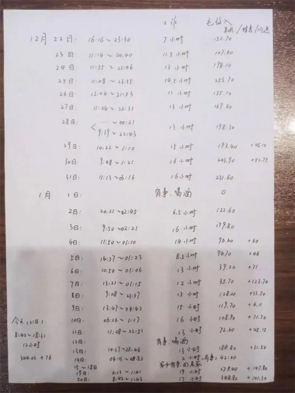 送外賣的這一個月里,邢斌見到了3名女性外賣員,見到了幾位年齡很大的外賣騎手。在邢斌看來,“他們承擔(dān)不了每天14小時、全年無休這么大強度的勞動,我估計他們每個月能賺個三四千塊錢。春節(jié)過后,我離開了外賣隊伍,但在路上我還是首先注意到他們的身影。最近幾個月,我看到了越來越多的女性和老人騎手風(fēng)馳電掣爭分奪秒??赡茉傥kU再苦再累,他們也離不開這三四千塊錢的收入。家里的孩子、病床上的老人、銀行發(fā)來的房貸還款短信……都在提醒著他們:跑起來,快些跑!”