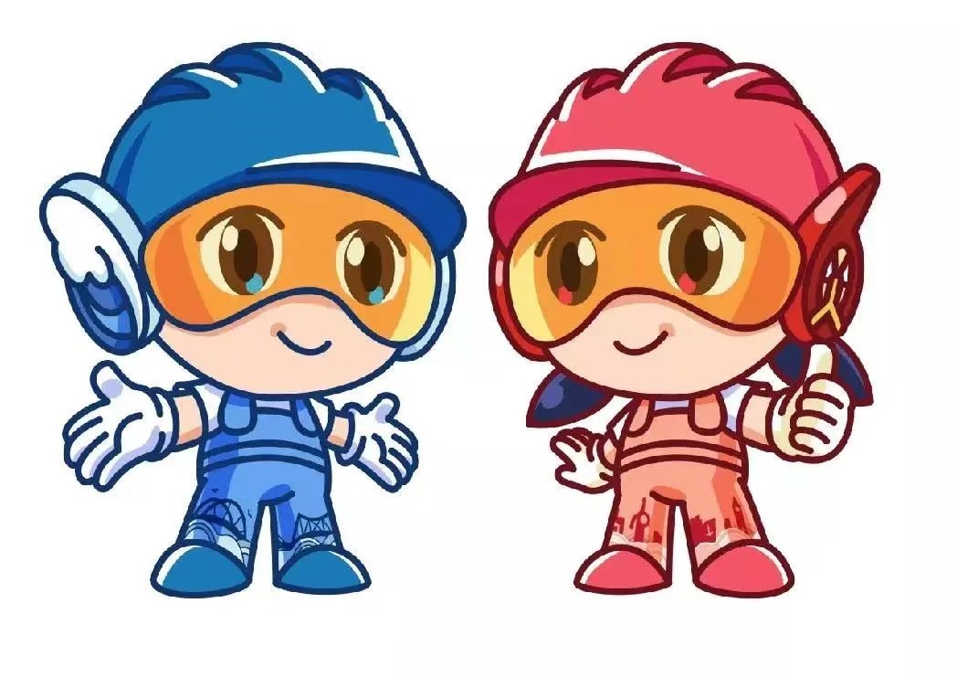 本屆大賽的吉祥物為“天天、津津”,形象為“一男、一女”兩個青年人物的造型,具有青春、活力、向上的鮮明特點(diǎn),色彩以藍(lán)色、紅色為主色調(diào),突出“技能藍(lán)、青春紅”,與大賽會標(biāo)“技”字標(biāo)識相呼應(yīng);服飾上通過統(tǒng)一的工裝服、安全帽、護(hù)目鏡、藍(lán)牙耳機(jī)等外形設(shè)計,形象鮮明地展現(xiàn)新時代技能人才的外表特征;通過人物專注自信的表情和張開雙臂、舉手點(diǎn)贊等形態(tài),凸顯了技能人才“力爭上游、奮勇拼搏”的精神面貌和天津人民“自信包容、樂觀好客”的性格特質(zhì)。同時,通過摩天輪造型耳機(jī)、特色橋梁、港口、天津新老標(biāo)志性建筑等形象設(shè)計,展現(xiàn)天津的城市元素。