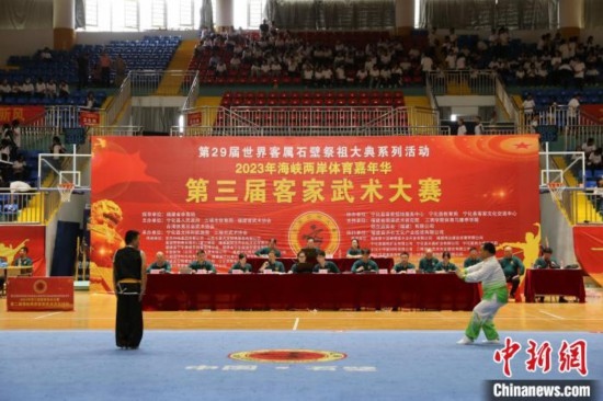 5日,第三屆客家武術(shù)大賽在福建省三明市寧化縣體育中心開賽,來自福建、江西、臺灣等地武術(shù)團(tuán)體、武術(shù)協(xié)會33支隊伍、500多名武術(shù)愛好者參加比賽。