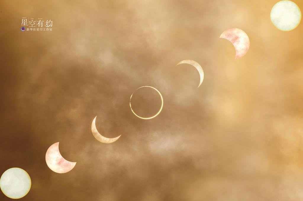 浙江省天文攝影愛(ài)好者夏凱2020年6月21日在廈門(mén)拍攝的日環(huán)食(多張疊加)。(本人供圖)