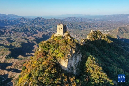 位于司馬臺(tái)長城東端的“望京樓”(無人機(jī)照片,10月15日攝)。