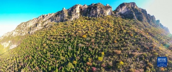 掩映在紅葉中的司馬臺(tái)長城(10月15日攝)。