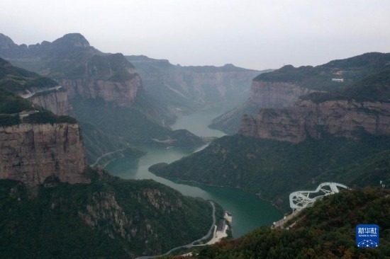 這是河南寶泉旅游度假區(qū)景色(10月19日攝,無人機照片)。