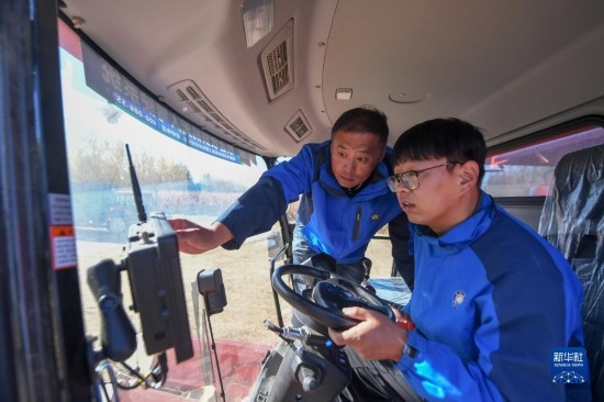 10月19日,在中國科學院“黑土糧倉”科技會戰(zhàn)長春示范區(qū)公主嶺示范基地,中國科學院東北地理與農(nóng)業(yè)生態(tài)研究所高級工程師陳國雙(左)與團隊成員調試無人駕駛農(nóng)機。
