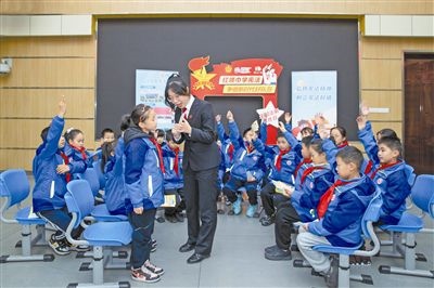 圖⑨:送法進校園。圖為諸暨法院法官來到浣東小學普法授課,結(jié)合小故事、小案例為同學們答疑解惑,豐富法律知識。