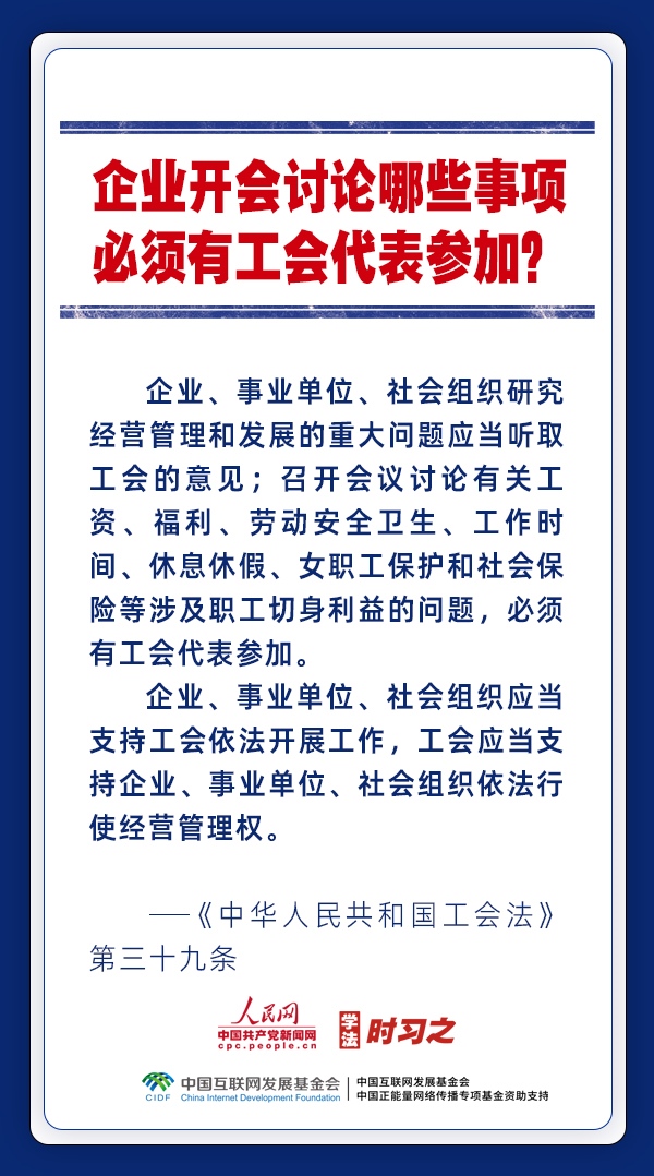 日前,中華全國總工會新一屆領(lǐng)導(dǎo)班子產(chǎn)生。黨和政府歷來重視工會的地位作用,十分注重加強(qiáng)工會法律制度建設(shè),專門為廣大職工制定了《中華人民共和國工會法》。網(wǎng)約車司機(jī)、快遞員、外賣配送員能入工會嗎?產(chǎn)業(yè)工人隊伍建設(shè)改革的目標(biāo)是什么?企業(yè)開會討論哪些事項必須有工會代表參加?一起來了解。