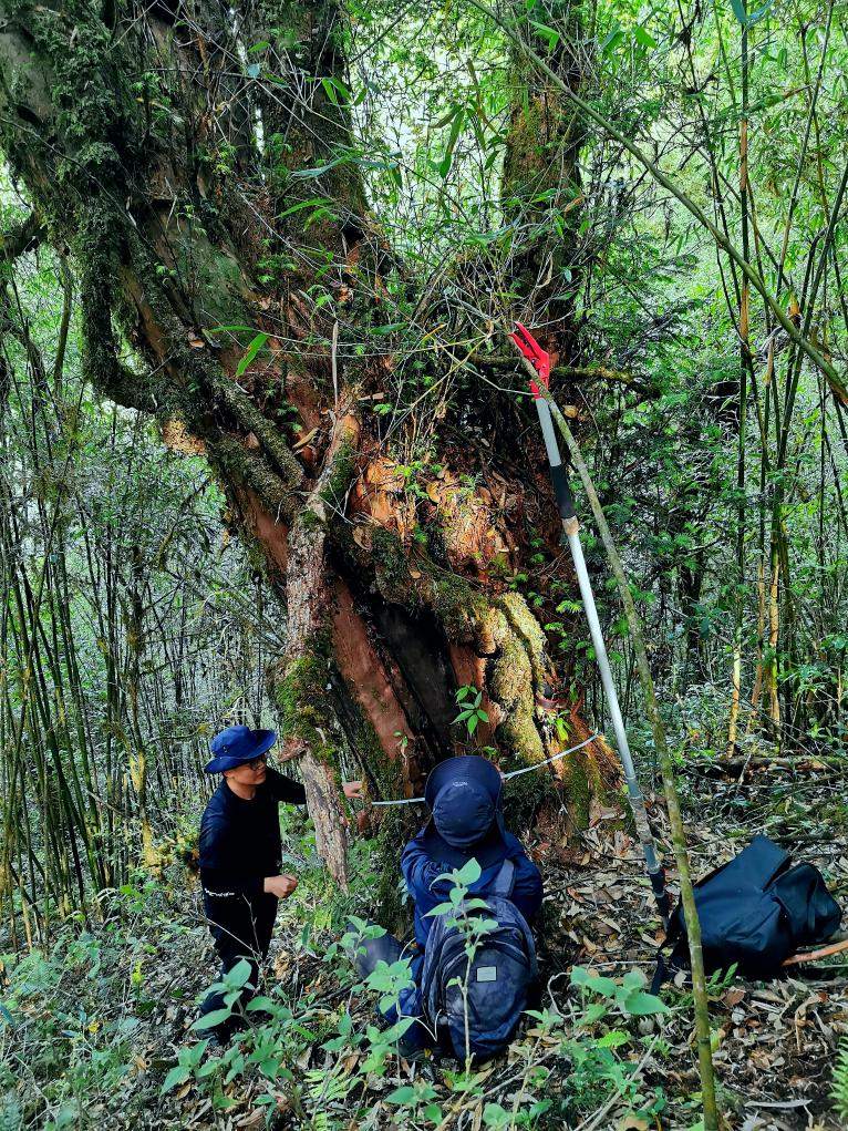 “野生喜馬拉雅紅豆杉在野外生長速度緩慢、再生能力差,像胸徑這樣大的野生喜馬拉雅紅豆杉我也是第一次遇到?!背啥祭砉ご髮W(xué)教授石松林介紹,這株喜馬拉雅紅豆杉分布在海拔約2850米區(qū)域,高約12米、胸徑達(dá)1.32米。