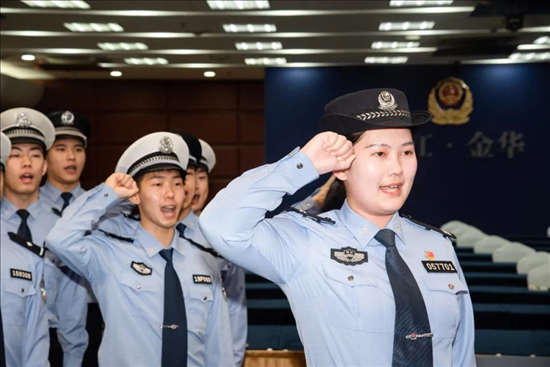 11月6日,浙江金華,警號057701重啟儀式在金華市公安局舉行,00后新警傅蕓繼承了父親傅煜華的警號。2013年,年僅39歲的傅煜華倒在工作崗位,被追授“全國公安系統(tǒng)二級英?!?。傅蕓說,她將替爸爸續(xù)寫完他的從警路。