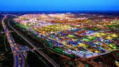 夜幕下,雄安新區(qū)建設(shè)現(xiàn)場的燈光照亮夜空,勾勒出一道道美麗的風(fēng)景線。薛志勇攝