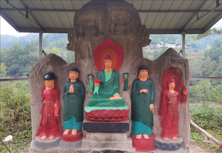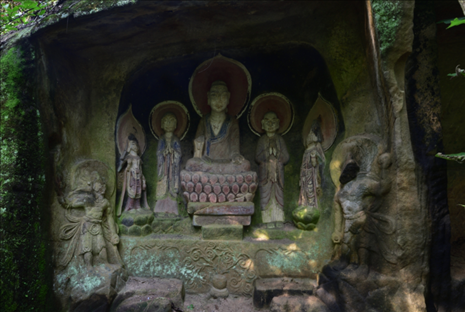 此外在四川廣安、資陽、內(nèi)江等地也存在類似情況。位于廣安市經(jīng)開區(qū)的金鳳山摩崖造像,開鑿于宋代,1994年當(dāng)?shù)厝罕娮阅假Y金對造像的殘缺部位進行了修補,并涂上紅、藍、青三色油漆。位于內(nèi)江市資中縣的羅漢洞,建于宋代,1998年,當(dāng)?shù)厝罕娮曰I資金對羅漢洞內(nèi)“拈花微笑佛”進行裝彩重繪,目前,其余造像無妝彩重塑現(xiàn)象。此外,核查中還發(fā)現(xiàn)四川資陽市雁江區(qū)的半月山摩崖造像,佛足部分有人為刻畫痕跡。