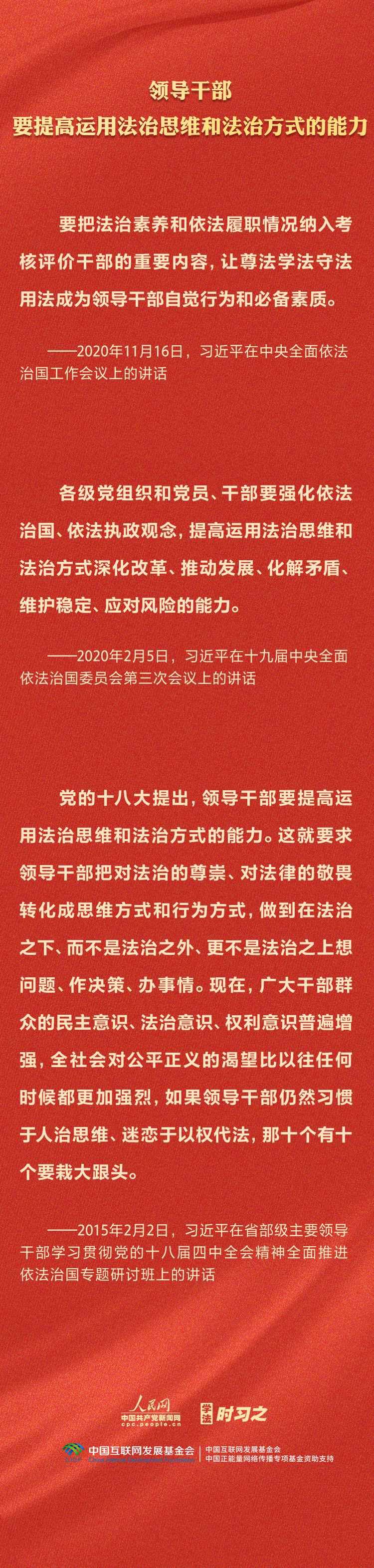 今年是貫徹落實(shí)黨的二十大精神的開局之年。中共中央政治局決定從今年4月開始,在全黨自上而下開展學(xué)習(xí)貫徹習(xí)近平新時(shí)代中國(guó)特色社會(huì)主義思想主題教育。習(xí)近平法治思想是習(xí)近平新時(shí)代中國(guó)特色社會(huì)主義思想的重要組成部分,人民網(wǎng)·中國(guó)共產(chǎn)黨新聞網(wǎng)推出學(xué)法時(shí)習(xí)之·學(xué)習(xí)習(xí)近平法治思想系列策劃,本篇聚焦“堅(jiān)持抓住領(lǐng)導(dǎo)干部這個(gè)‘關(guān)鍵少數(shù)’”。