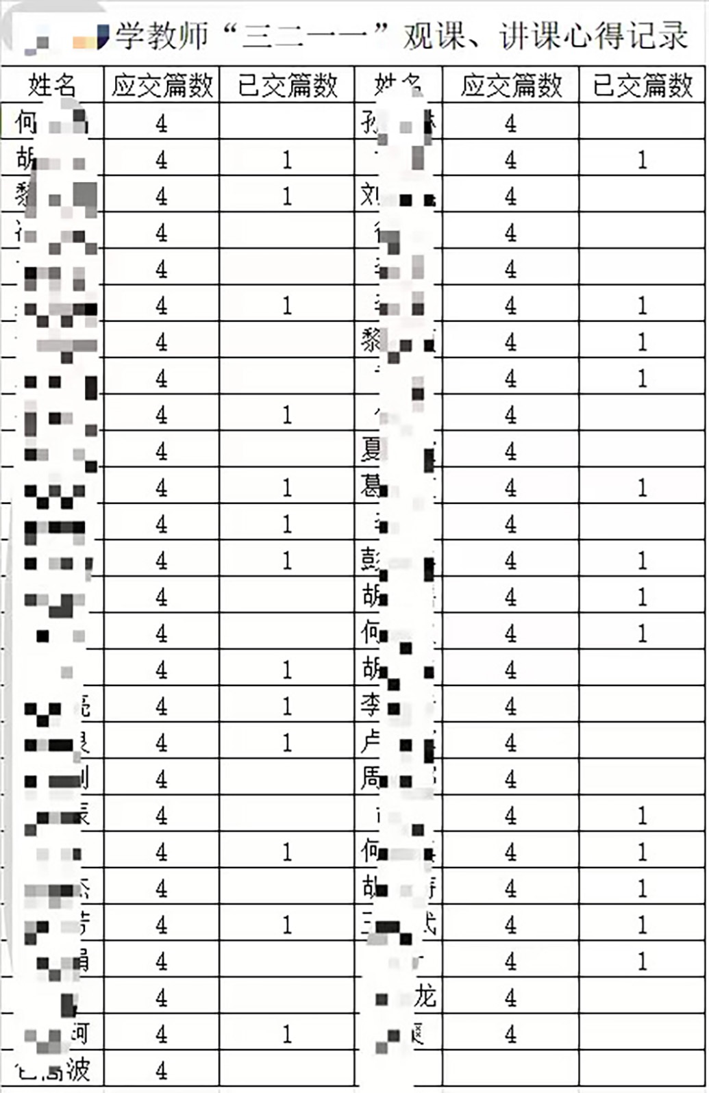 作為班主任,她承擔(dān)管理班級(jí)的責(zé)任,學(xué)校為了“看見”管理內(nèi)容,會(huì)安排教師們填寫各種各樣的表格,包括每日缺勤記錄表,每日、每周、每月、每學(xué)期的安全記錄表,班主任工作手冊,行為規(guī)范課堂記錄表,家訪表,家長會(huì)座談表等。表格一多,何雪夕免不了“造假”。