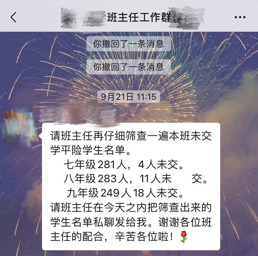 她要反復(fù)叮囑學(xué)生,同時(shí)在家長群一一驗(yàn)收,“力求100%完成”。因?yàn)檫@些任務(wù)大多與她的績效掛鉤。但并非所有家長都愿意配合,因?yàn)樾枰_認(rèn)的通知太多,她還為此被家長告到教育局。