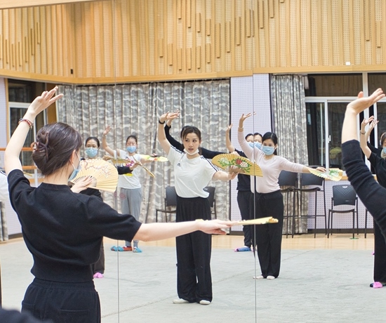 一些年輕人在夜校學(xué)習(xí)淮劇團團扇課程。上海市群眾藝術(shù)館供圖