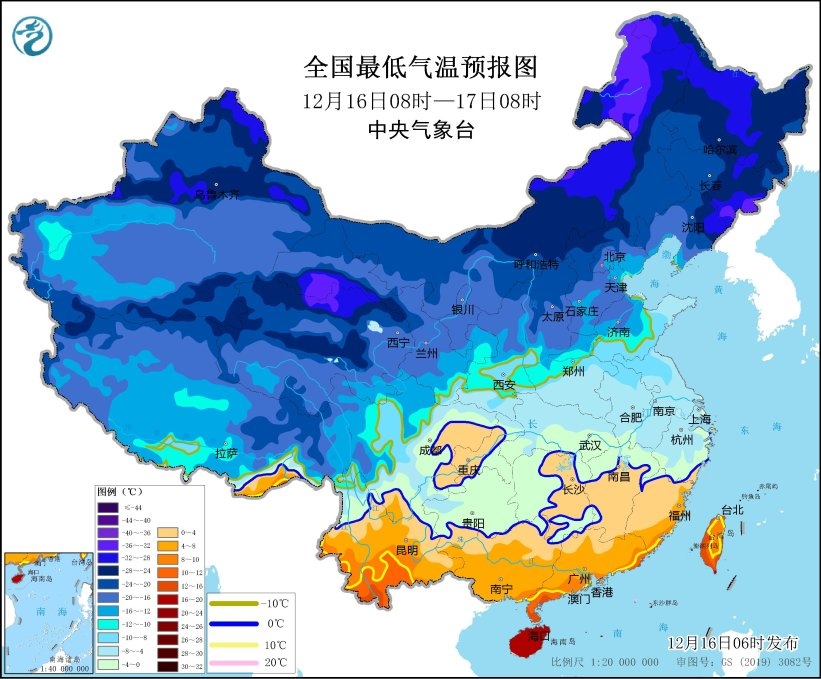 中央氣象臺12月16日06時(shí)發(fā)布寒潮藍(lán)色預(yù)警: