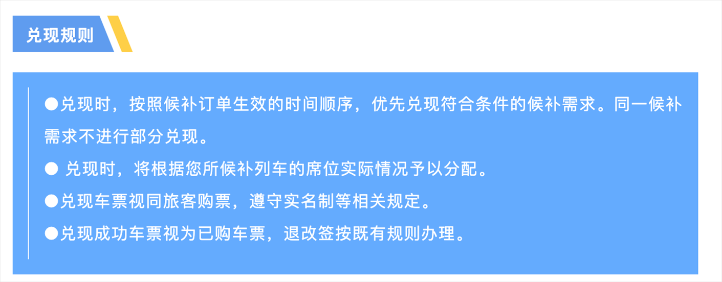 鐵路12306關(guān)于“候補(bǔ)購(gòu)票訂單兌現(xiàn)”的提示