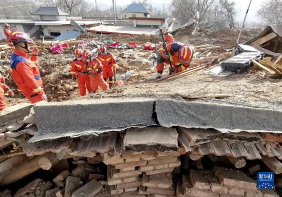 12月19日,救援人員在青海省民和縣中川鄉(xiāng)美一村進(jìn)行救援。