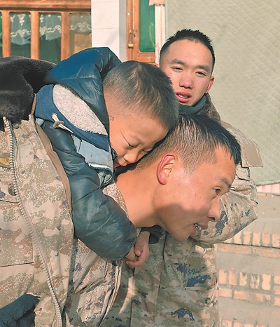 12月19日,西部戰(zhàn)區(qū)第76集團(tuán)軍某旅在積石山縣大河家鎮(zhèn)陳家小學(xué)展開救援。馮彥榮攝(新華社發(fā))